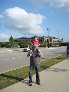 I wanted to take a picture in front of the stadium with Aiden, but he had other plans. This was the best shot we could get.